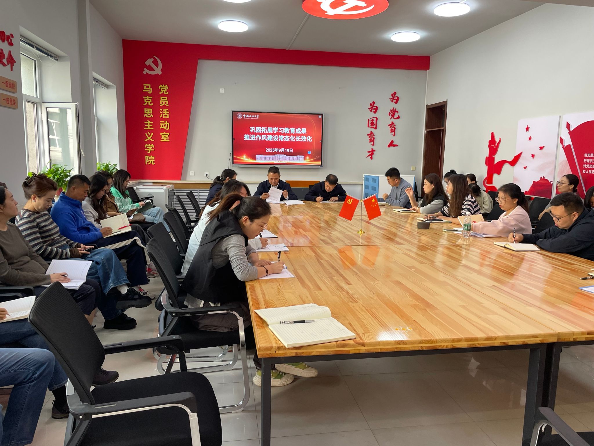 会议强调,作风建设永远在路上,要持续深入学习贯彻习近平总书记重要讲话和重要指示精神,准确把握全面从严治党新形势新要求,结合学院工作实际,立足“十五五”发展,巩固拓展学习教育成果,推进作风建设常态化长效化。