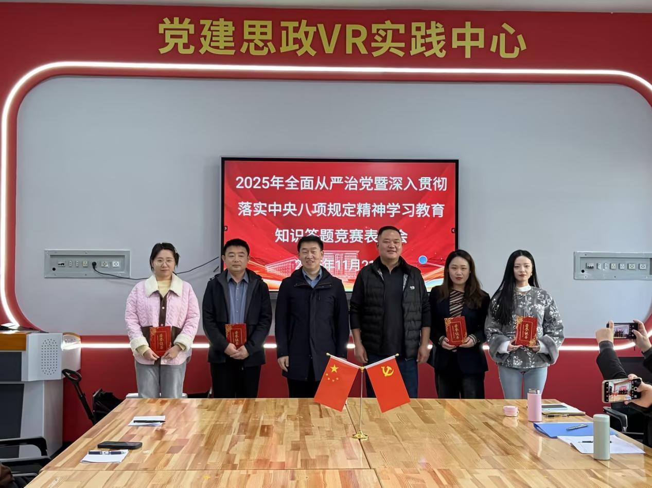 2025年11月21日,为进一步推动全面从严治党向纵深发展,深化落实中央八项规定精神及其细则要求,营造风清气正的政治生态和育人环境,马克思主义学院在党员活动室隆重举行“2025年全面从严治党暨深入贯彻落实中央八项规定精神学习教育知识答题竞赛表彰会”。
