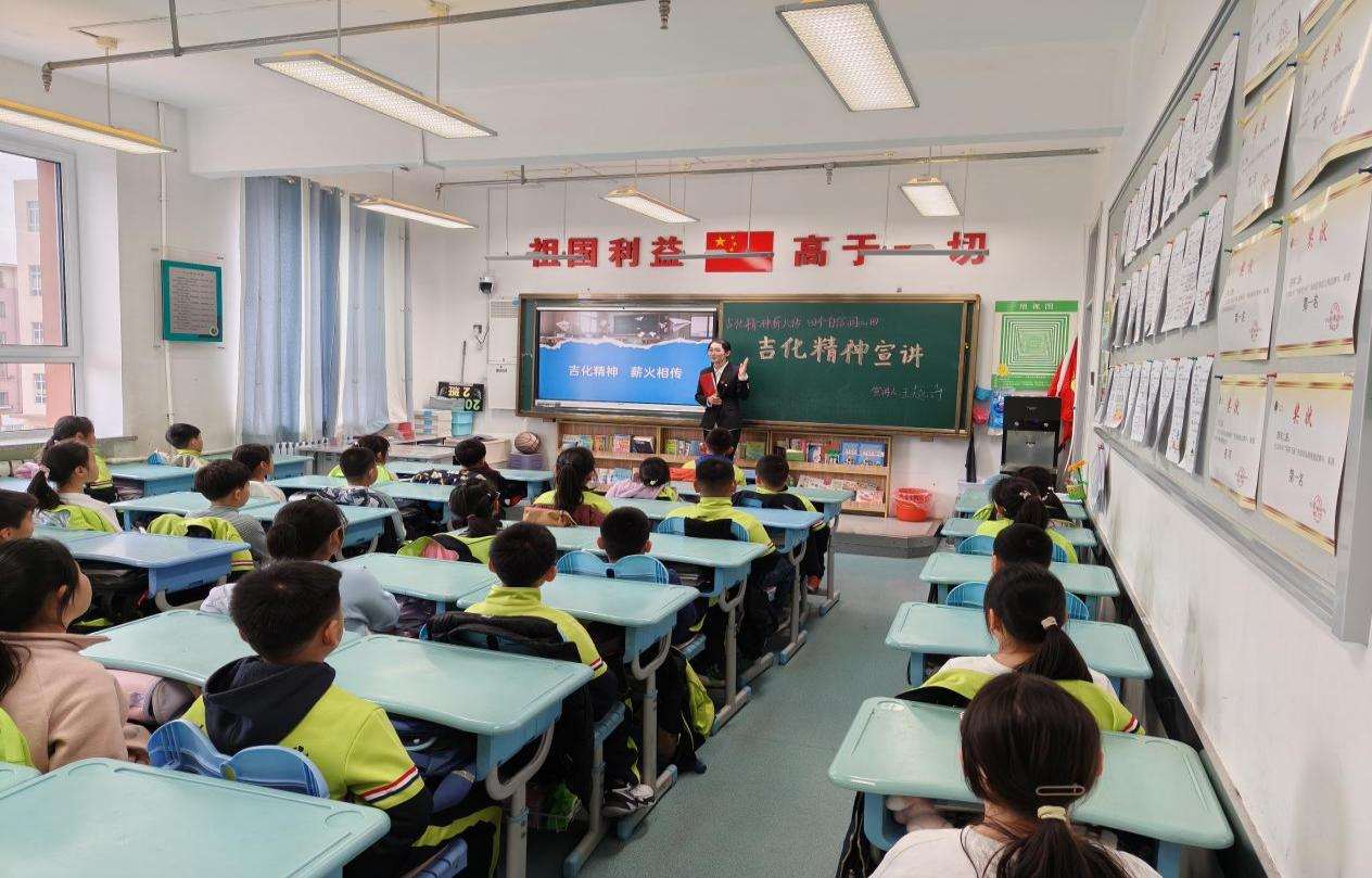 在“五四”青年节即将来临之际,吉林化工大学选派6名优秀学生宣讲员,走进吉化第一实验小学四年级6个班级,开展吉化精神宣讲活动,以青春之声传递精神力量,让实践育人落到实处、浸润童心。