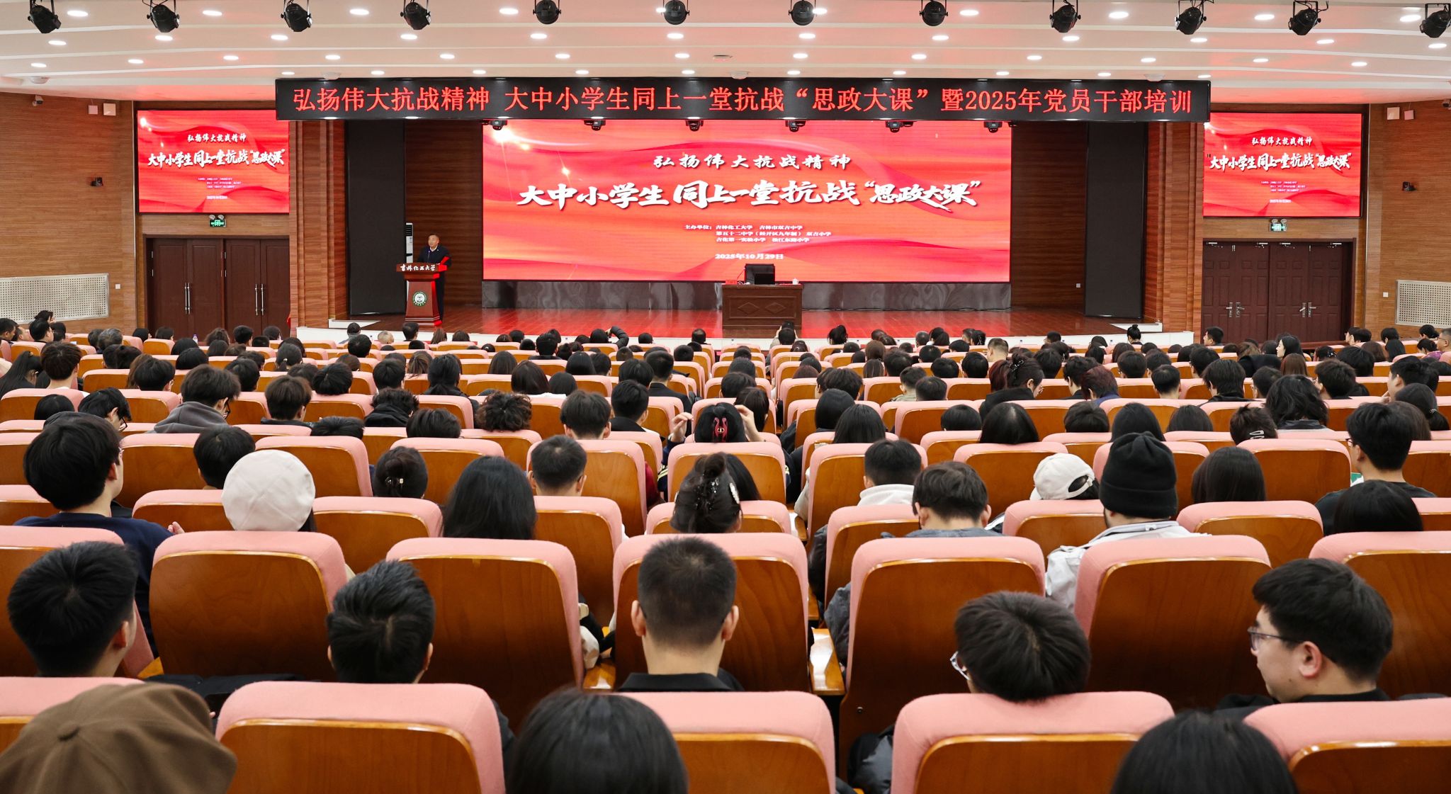 10月29日,马克思主义学院举行大中小学同上一堂抗战“思政大课”。我院全体教师与双吉中学、第五十二中学、吉化一小、松江东路小学及双吉小学的校领导、教师代表与学生代表齐聚一堂,共同聆听历史回响,感悟抗战精神的磅礴力量。学校党委副书记蔡立峰出席并主持报告会。